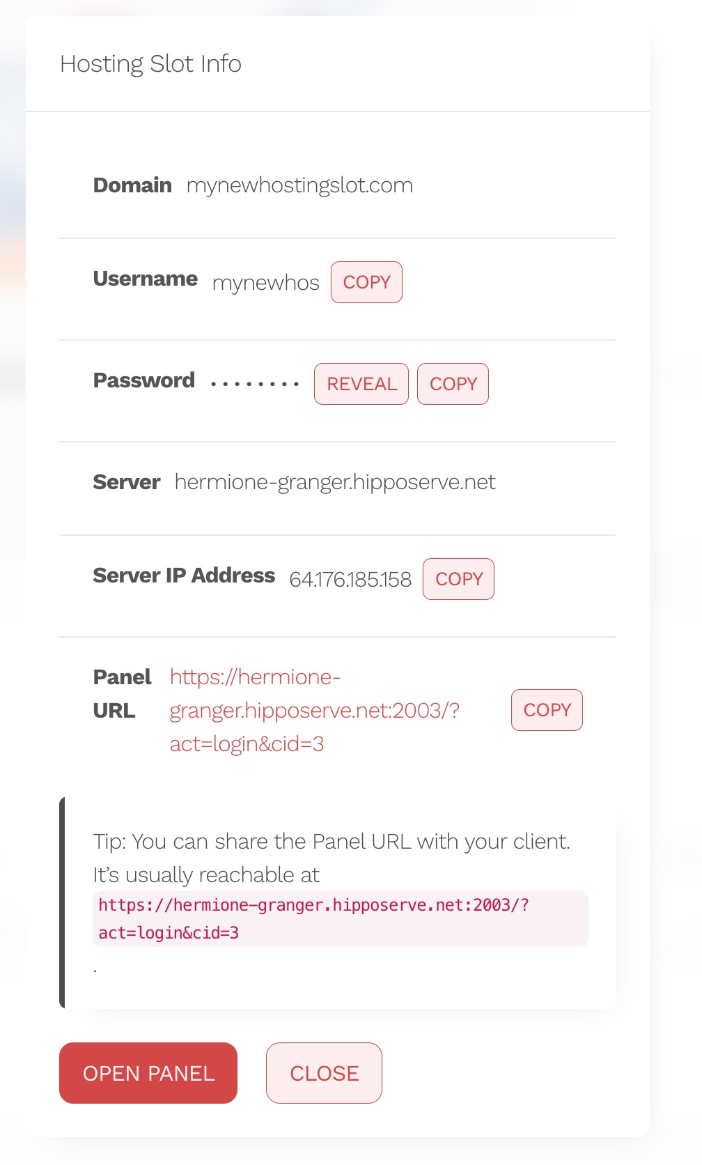 2. Click the Actions icon next to your hosting slot.