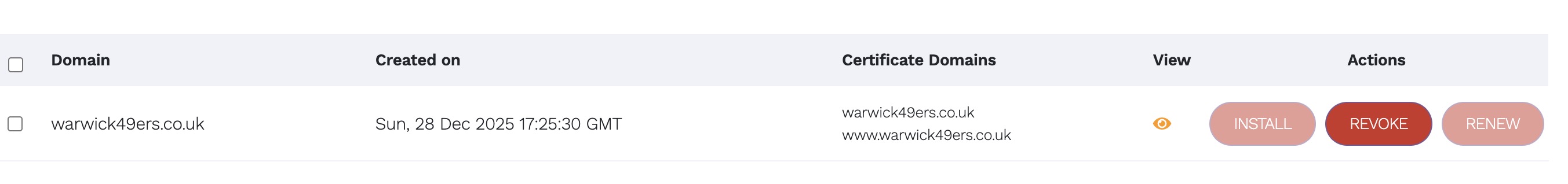 • After a short wait, refresh the page. Once installed, the certificate details will be displayed and your forwarded domain will load securely over HTTPS.