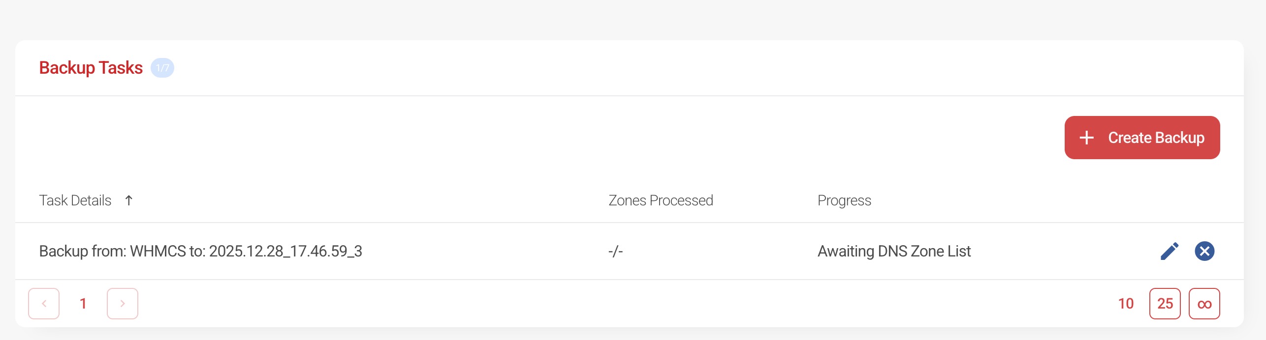 When you initiate a manual DNS backup, a background task is created and the backup is stored securely within your Hippo Portal.