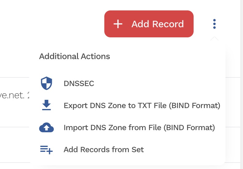 • Click the three dots in the top-right corner of the DNS zone