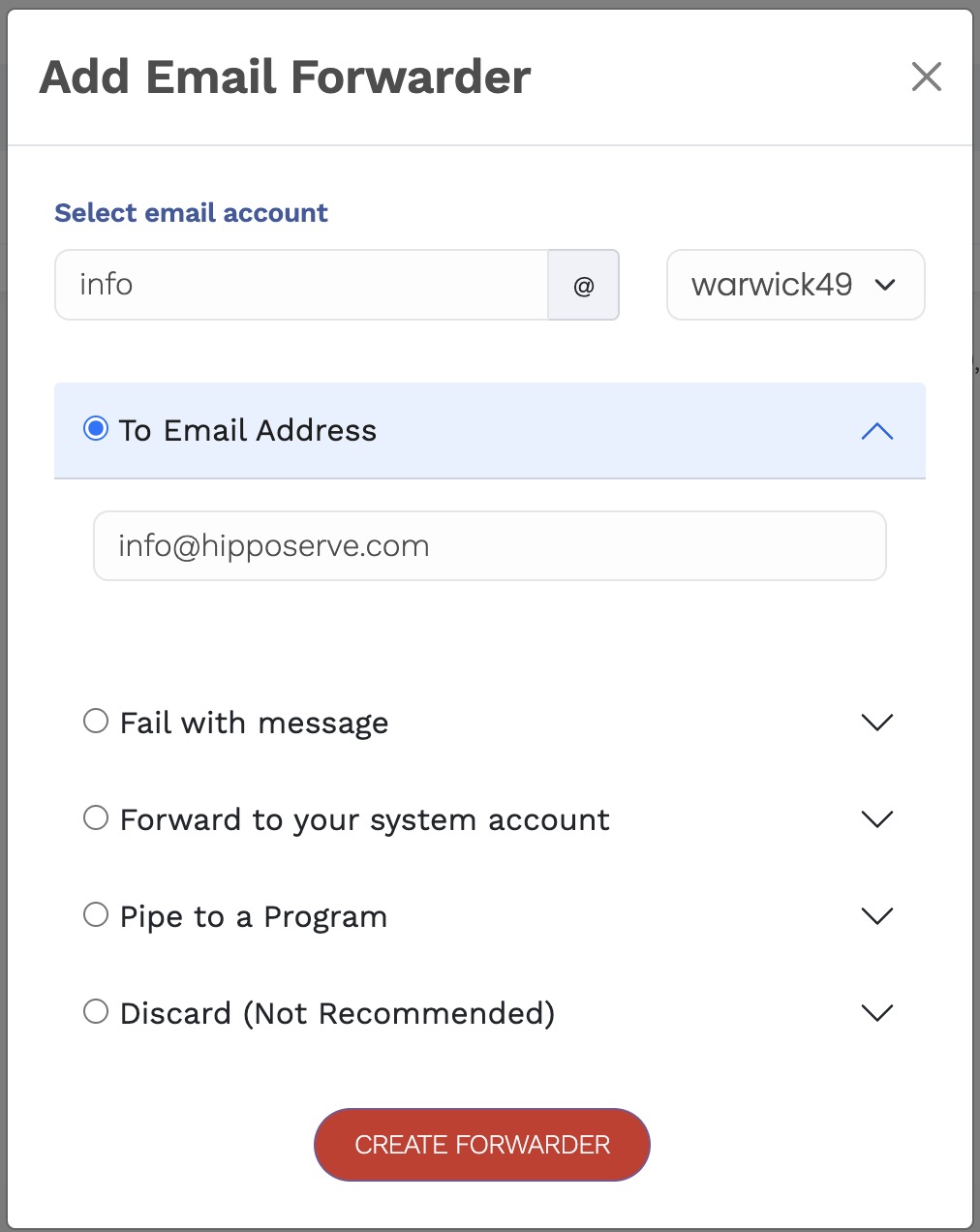Me Hipposerve ezForward™, mund të krijoni email forwarder-a të thjeshtë pa pasur nevojë të konfiguroni kuti postare të plota.